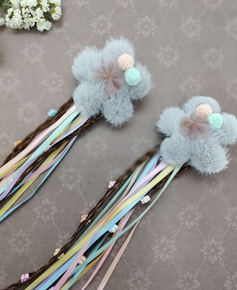 FLOWER BRAIDED HANDCRAFTED LONG BOW - GREY