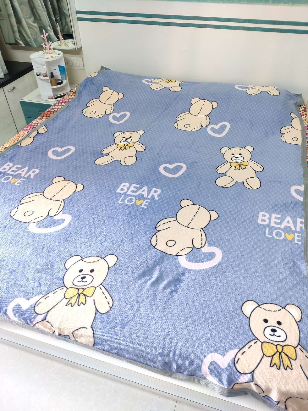 TEDDY LOVE PRINTED BLANKET - BLUE